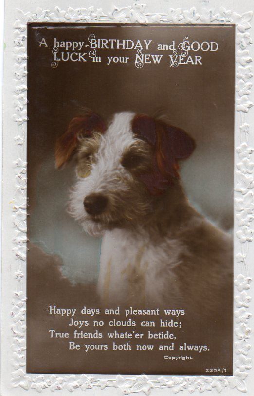 Title (ebay affiliate link): VINTAGE BIRTHDAY GREETING postcard of LOVELY FOX TERRIER DOG