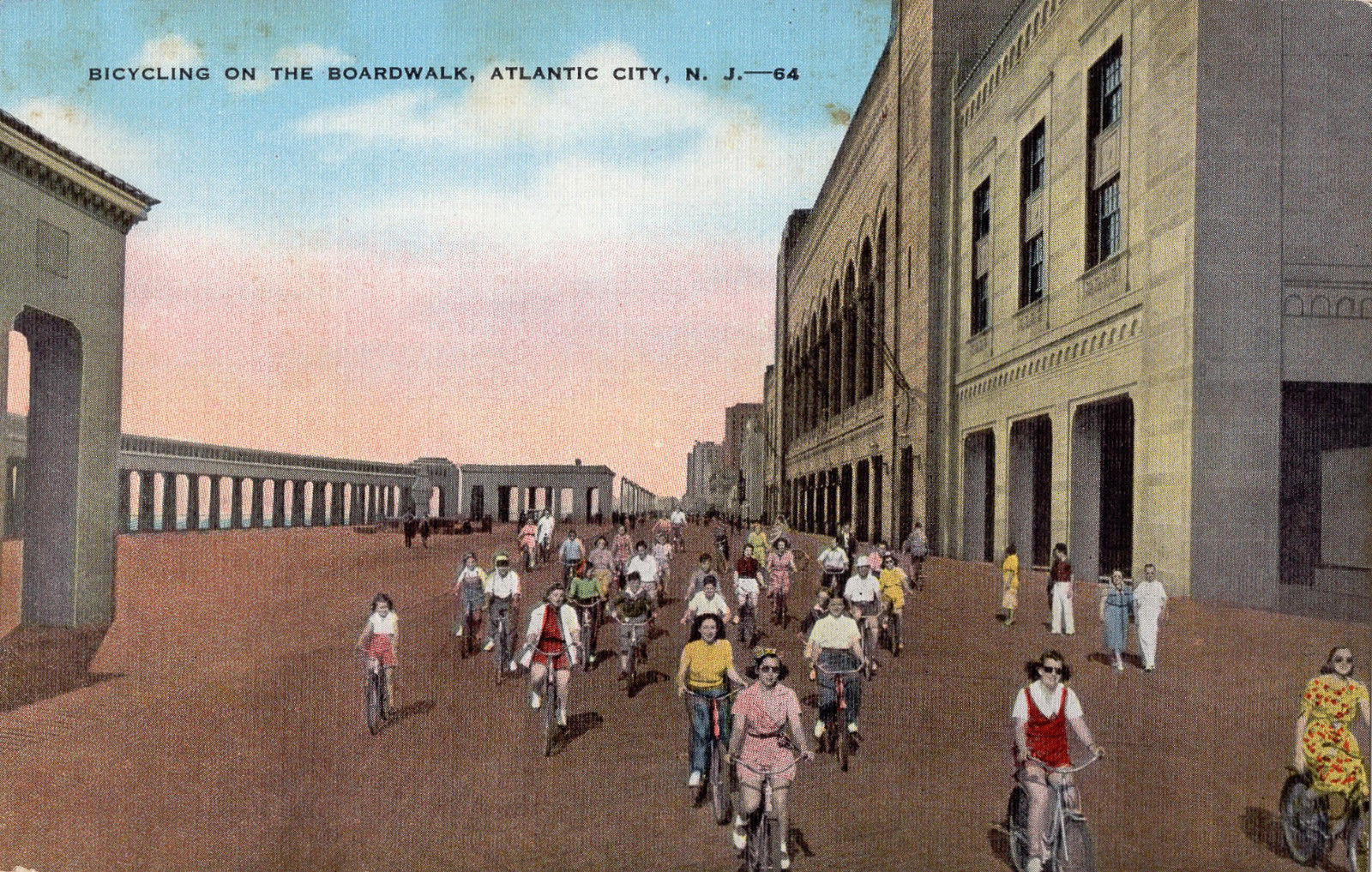 Title (ebay affiliate link): Linen postcard, Bicycling on the boardwalk, Atlantic City, NJ
