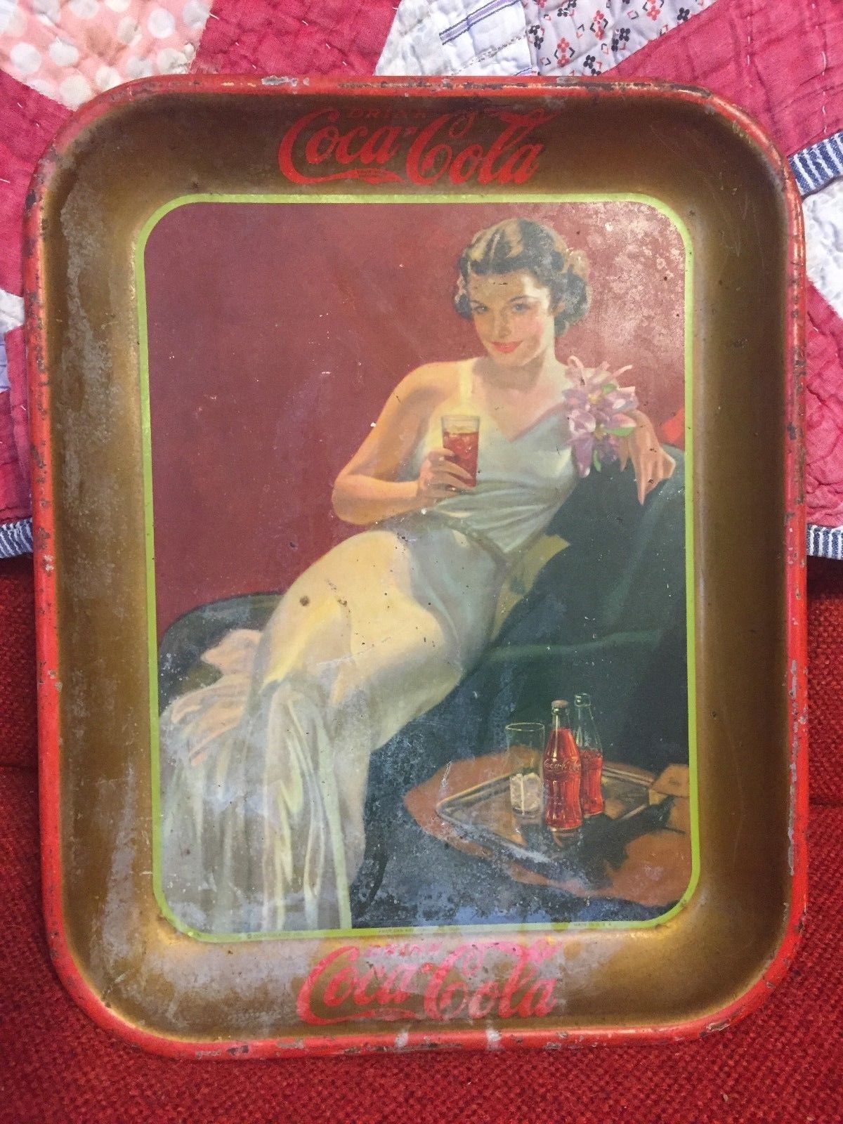 Title (ebay affiliate link): Vintage Coca Cola 1936 Tray Lady in Evening Gown Coshocton Ohio