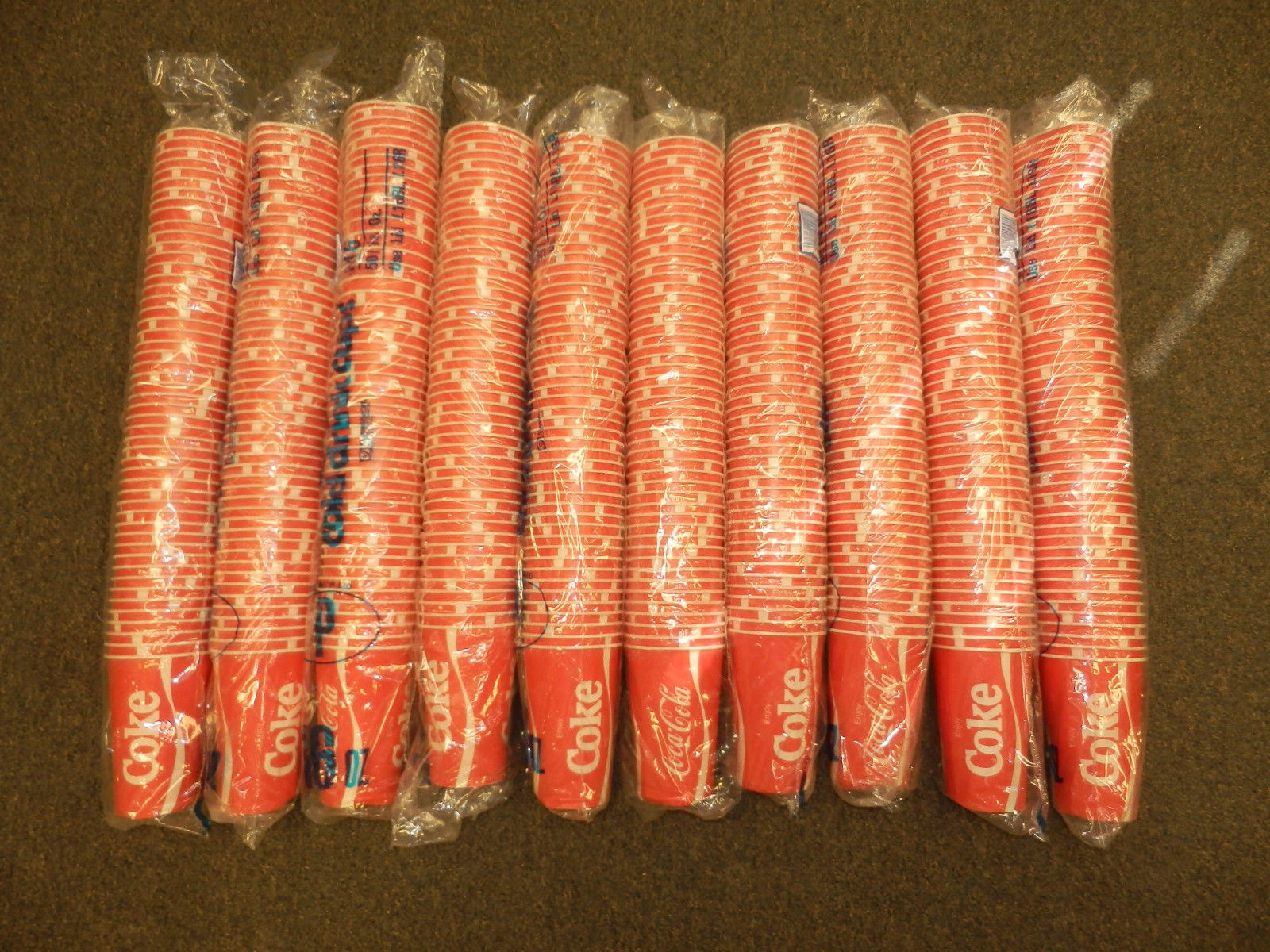 Title (ebay affiliate link): 500 Vintage Style Coke Cola Wax Coated Paper Cups Sealed In Plastic - 16 oz