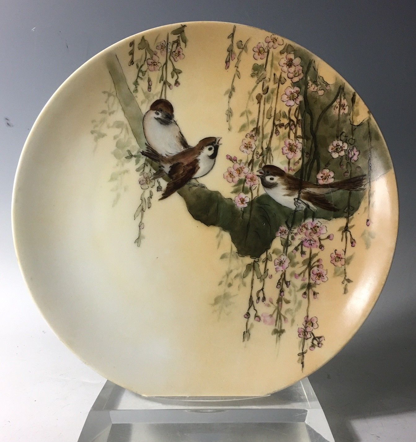 Antique KPM Porcelain Plate Plaque Handpainted Birds Flowers Adeline O''Donnell