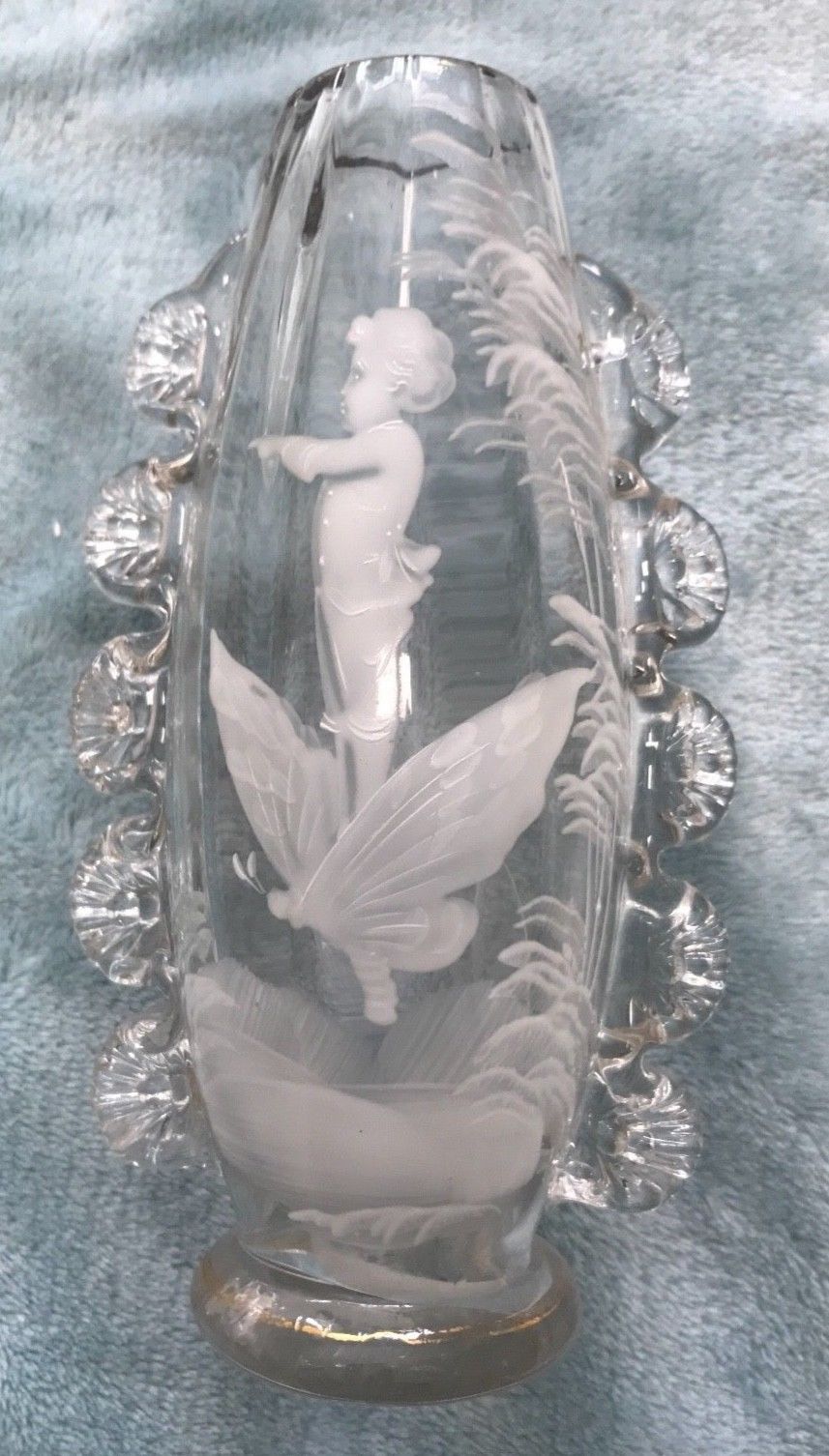Vintage Mary Gregory Clear 6 1/2" Etched Painted Bud Vase