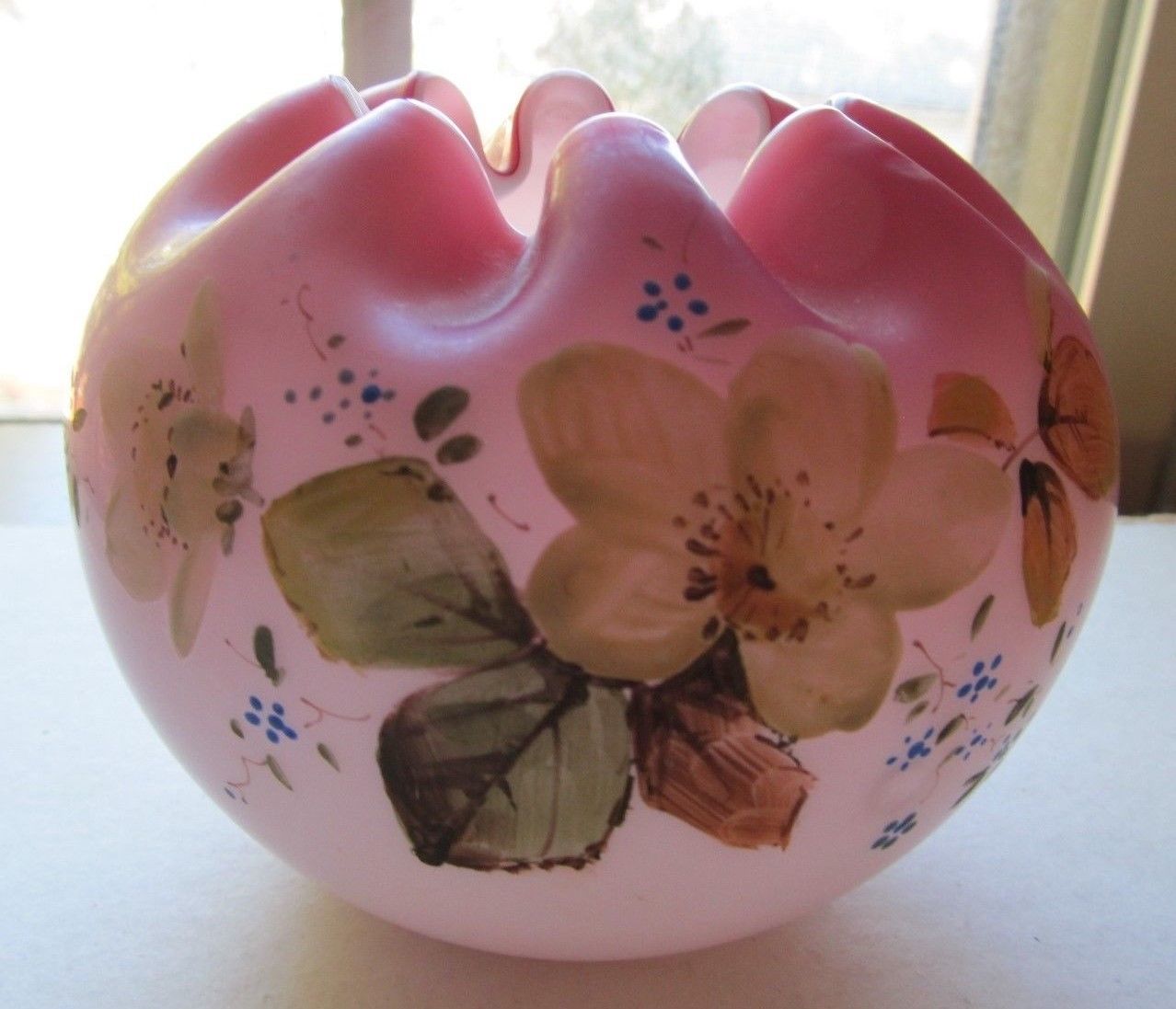 Title (ebay affiliate link): Antique Victorian ANTIQUE PEACH BLOW Ruffled BOWL Hand Painted MT. WASHINGTON