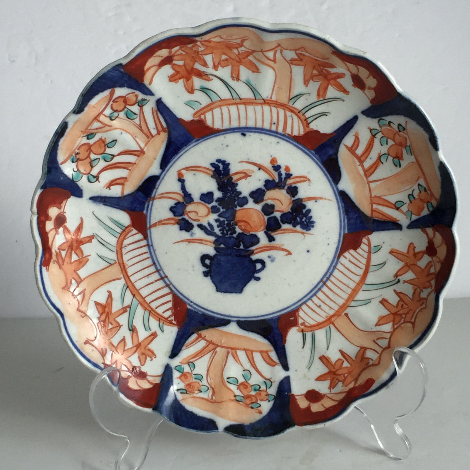 Antique Japanese Imari Porcelain Plate 19th Century Flowers in Pot