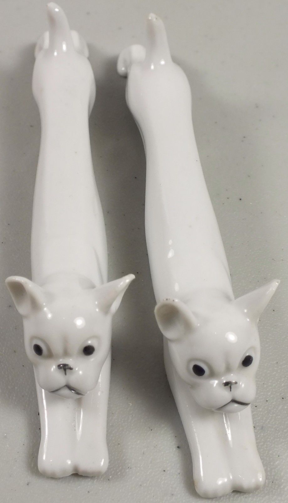 Pair Antique Pfeffer Germany Porcelain Boston Terrier Dog Knife Rests