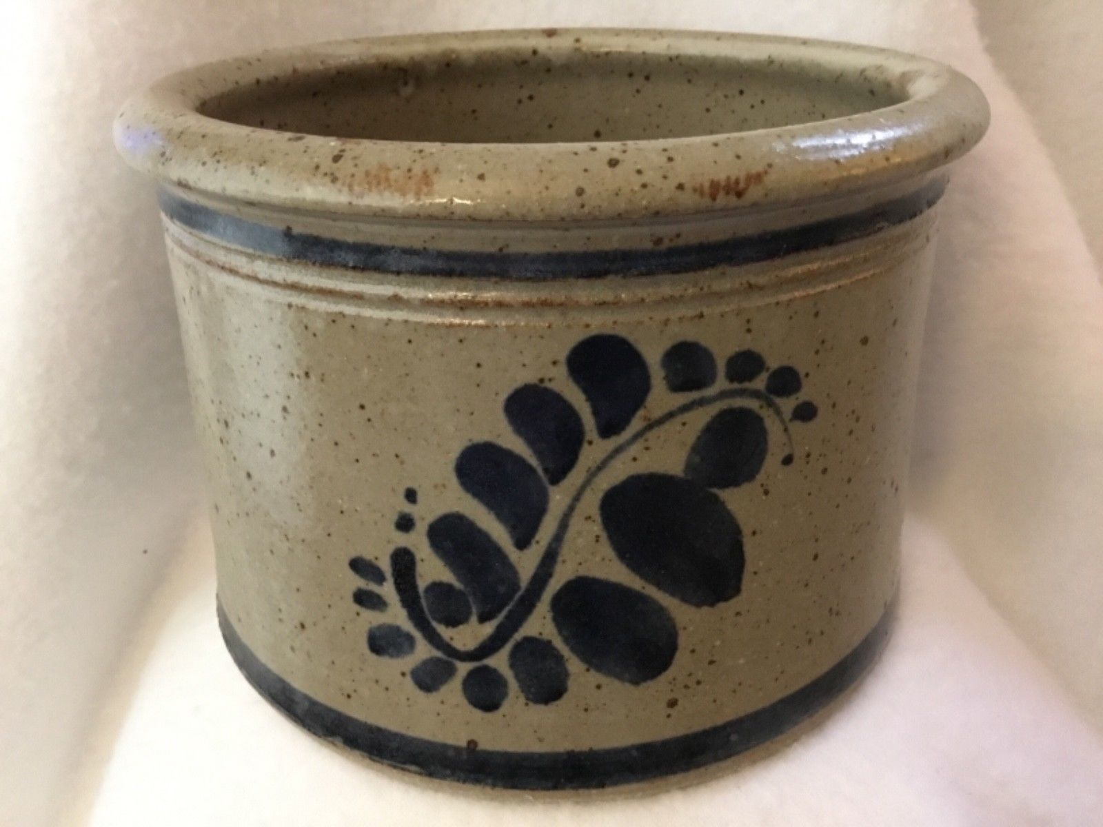Title (ebay affiliate link): Vintage1985 Small Salt Glazed Gray Pottery Crock With Blue Floral Design~ Signed