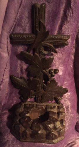 Title (ebay affiliate link): Vintage Black Forest Carved Walnut Intricate Design Cross W/carved Rock Base