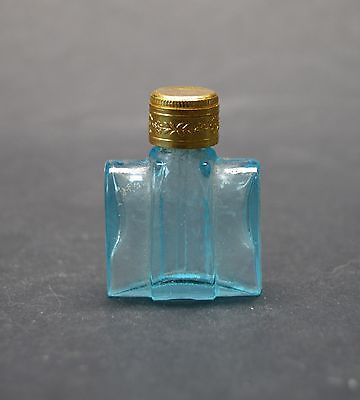 Vtg Czech Art Deco mini perfume bottleaqua blue glass glass dauber