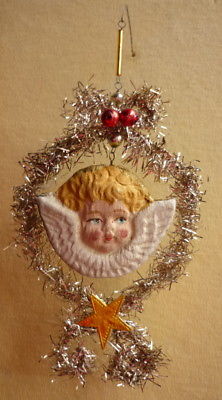 Title (ebay affiliate link): VTG.PAPIER ANGEL IN TINSEL ROUND CHRISTMAS TREE ORNAMENT