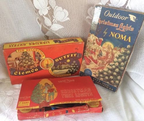 Title (ebay affiliate link): Vintage/Antique 3 Boxes Christmas Tree & Outdoor Lights NOMA, HAPPY TIME, CLEMCO