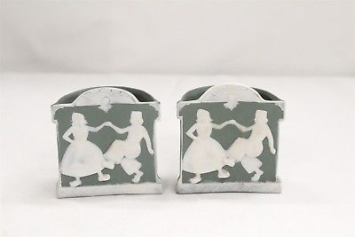 2 Schafer Vater Porcelain Dutch Girl Boy Dancing German Green White Vases