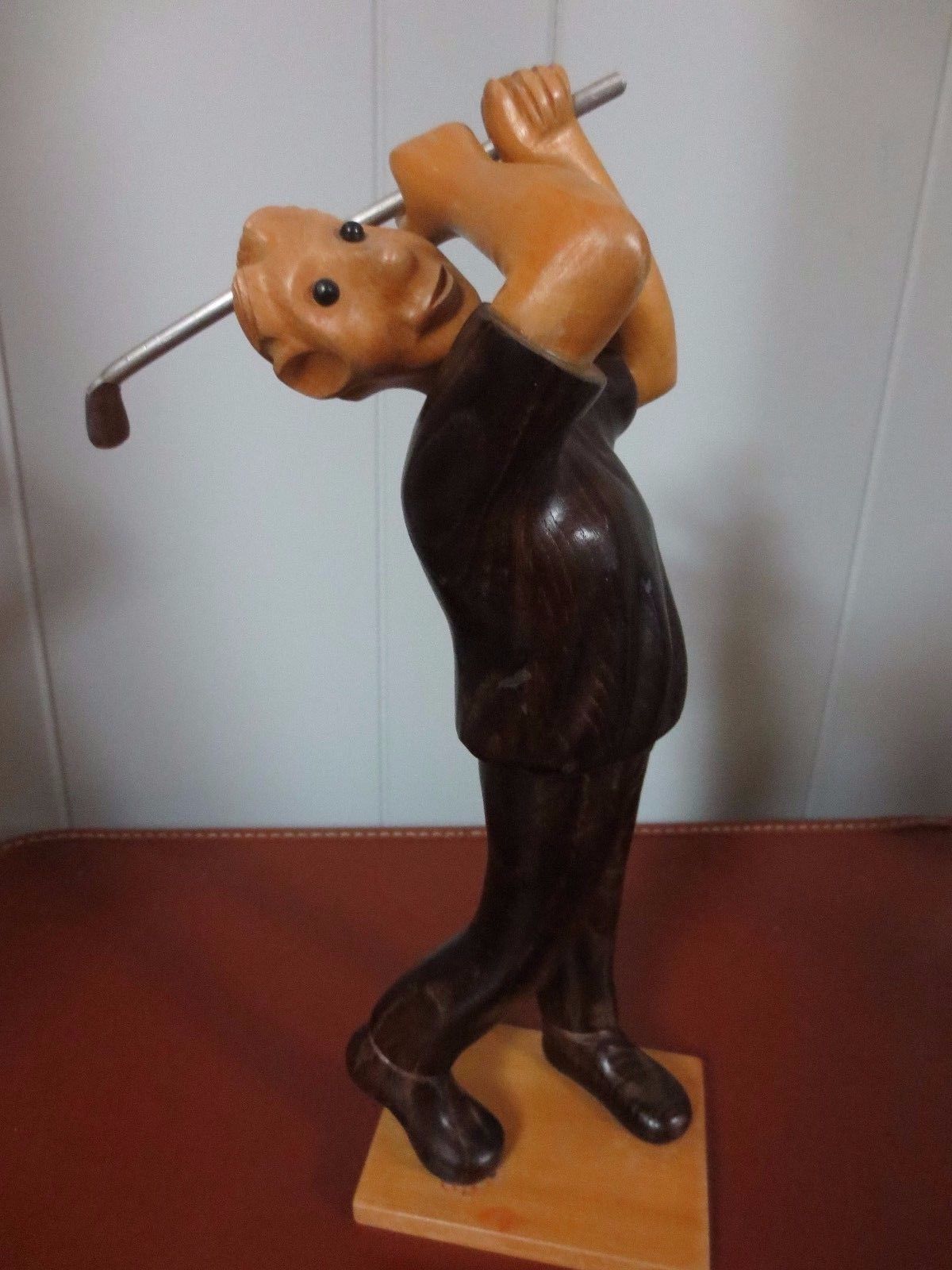 VINTAGE ROMER GOLFER HAND MADE IN ITALY WOODEN CARVING FIGURINE