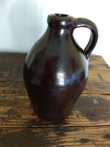 OLD VINTAGE BROWN OVOID SHAPED POTTERY JUG