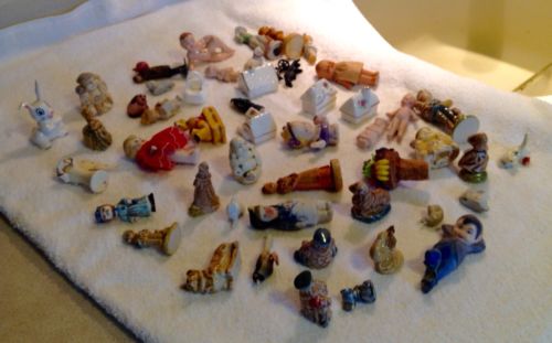 Vintage lot of 49 Small Porcelain Figurines. Unknown Source