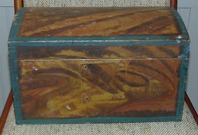ANTIQUE PRIMITIVE Grain Painted NEW ENGLAND Box DOME TOP