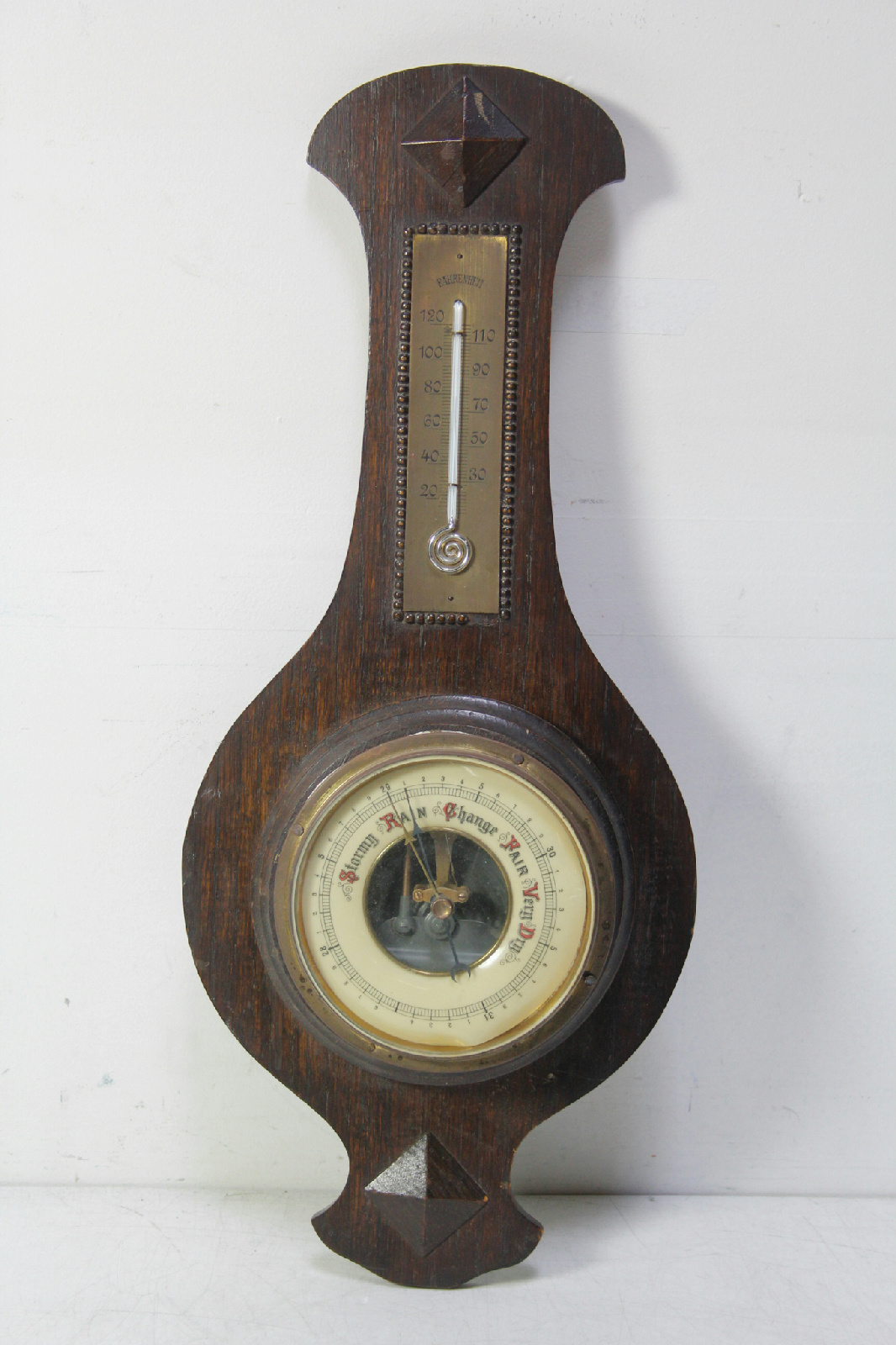 English Banjo Form Oak Wall Aneroid Barometer Thermometer Weather Station