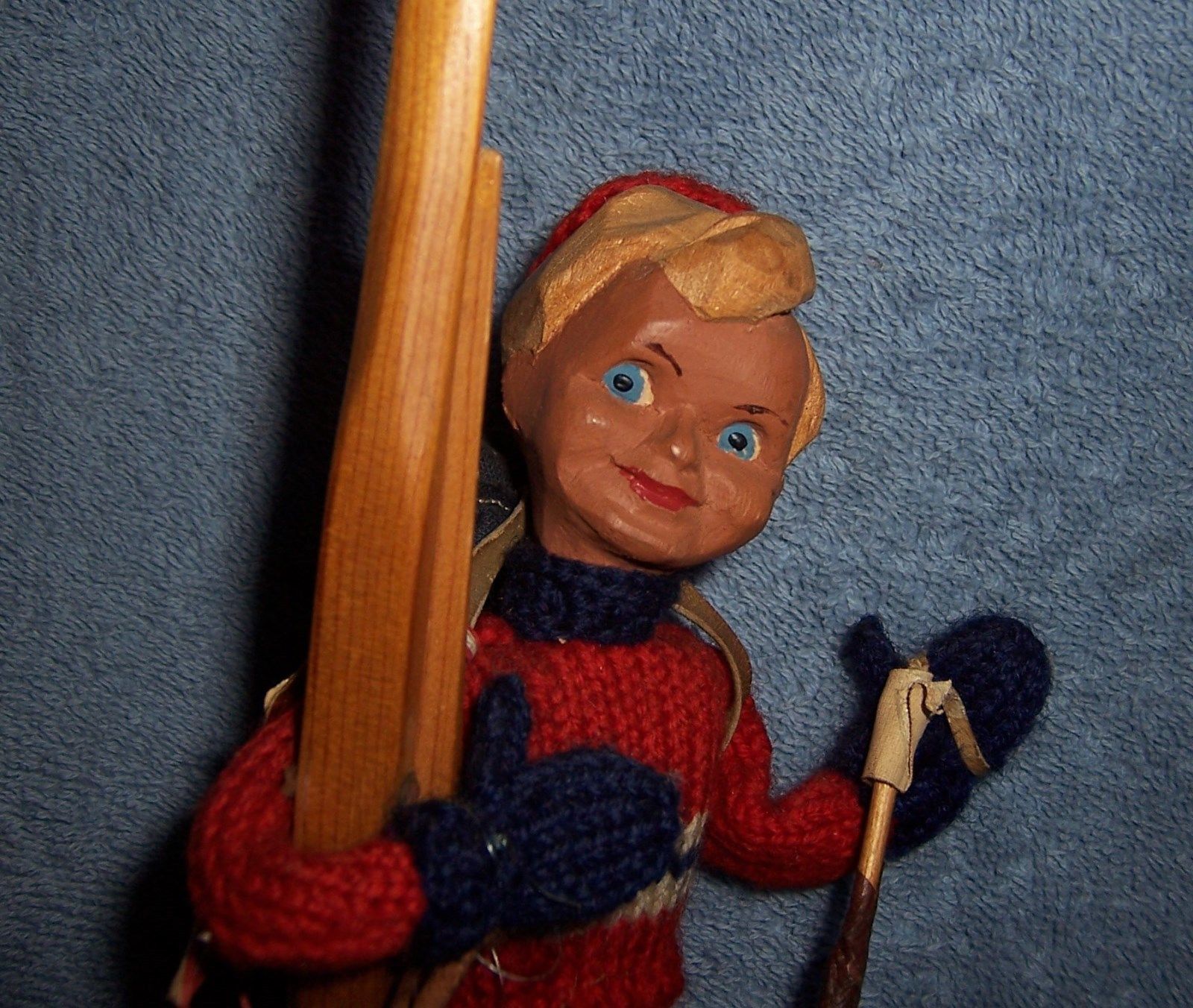 Title (ebay affiliate link): CUTE! 8.5" Vintage Wooden Wood Handmade Blonde Smiling Skier Boy Doll~Norway Tag