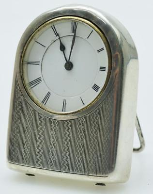 Fine Antique Solid Silver Traveling Desk Mantel Boudoir Clock Birmingham 1901