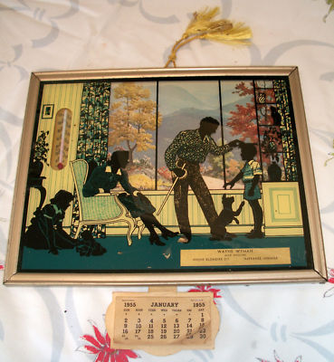 VINTAGE ADVERTISING SILHOUETTE CALENDAR & THERMOMETER