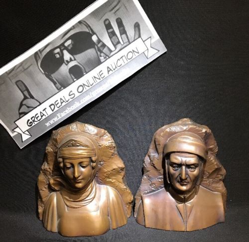 Title (ebay affiliate link): VINTAGE Jennings Bros Brass Art Metal Bookends Dante and Beatrice ESTATE FIND