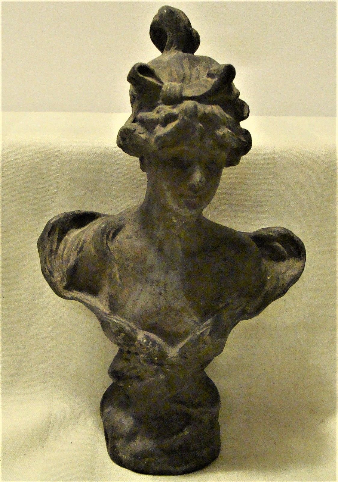 Title (ebay affiliate link): ANTIQUE SMALL LATE 1800s SIGNED ART NOUVEAU SPELTER VICTORIAN WOMAN BUST STATUE