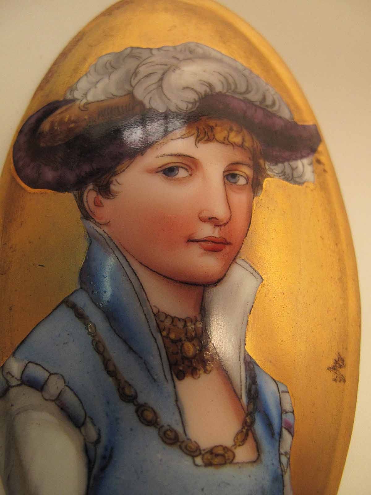 Antique Hand Painted Rosenthal Portrait Plaque Of Lady 4 1/2 x 2 1/2-Inches