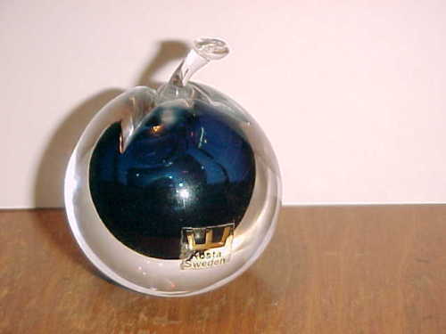 Title (ebay affiliate link): VINTAGE KOSTA SWEDEN ART GLASS APPLE PERFUME SCENT BOTTLE COBALT BLUE SIGNED/NBR