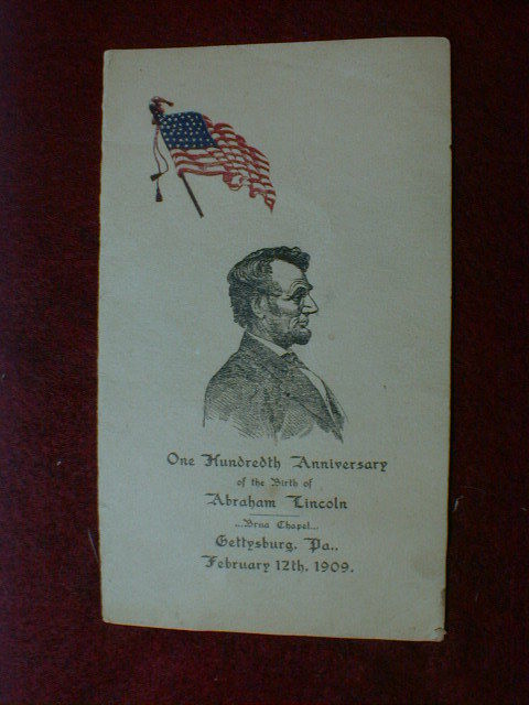 Title (ebay affiliate link): 1909 Abraham Lincoln 100 Year Anniversary Brua Chapel Gettysburg Pa. Program
