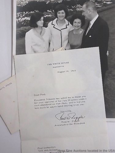 Title (ebay affiliate link): LBJ Lyndon Johnson Viet Nam Signed Letter by Paul Popple 1965 Family Photo