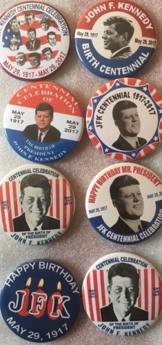 Title (ebay affiliate link): Great Lot Of Eight 2 1/2" JFK Centennial Birthday Political Buttons
