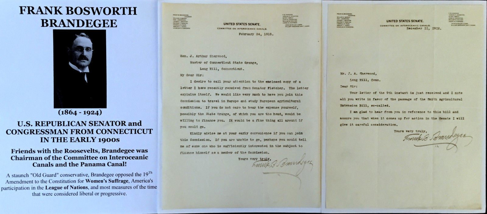Title (ebay affiliate link): PANAMA CANAL SENATOR CONGRESSMAN Anti-WOMEN''s SUFFRAGE LETTER SIGNED PAIR 1912 !