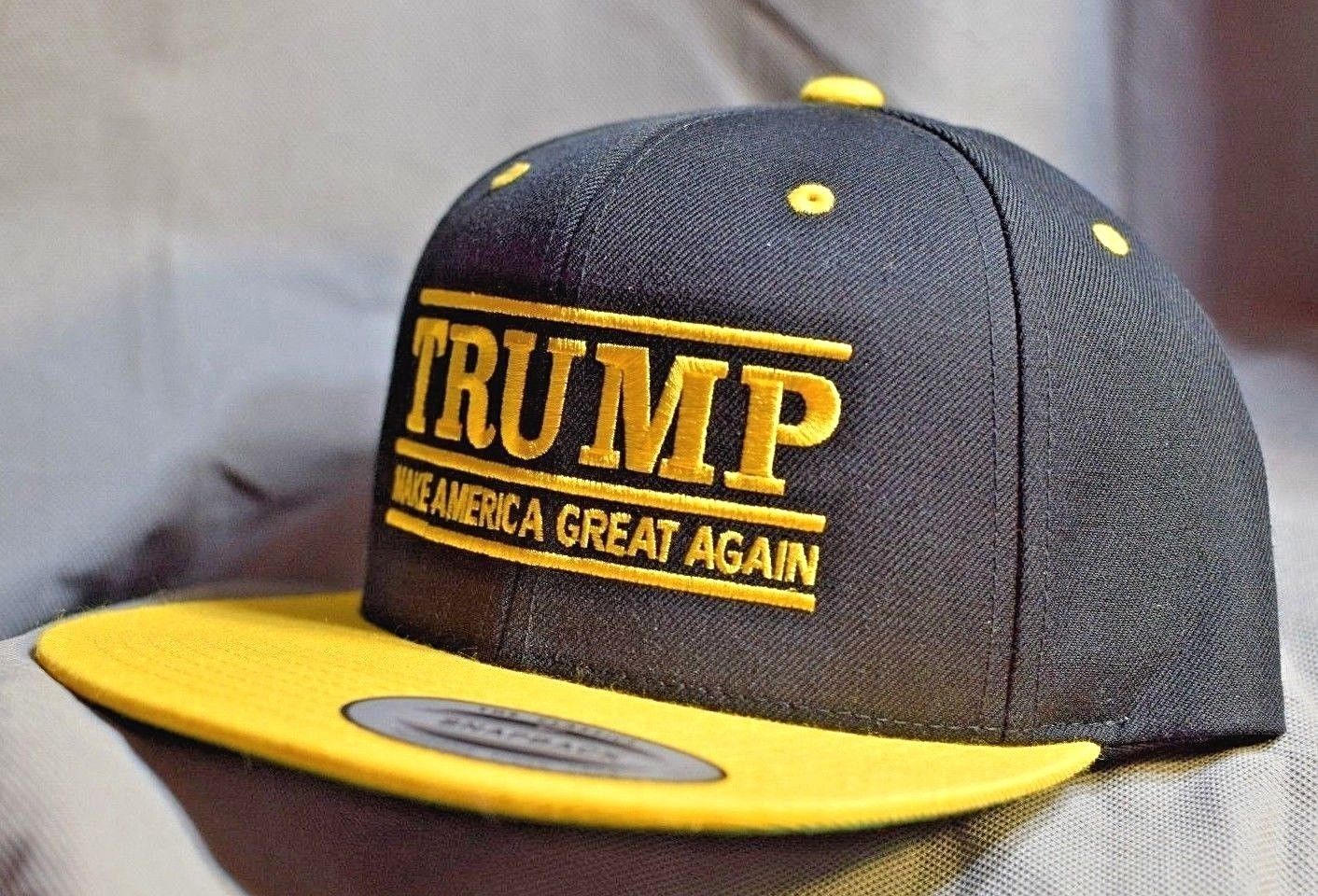 Title (ebay affiliate link): Donald Trump 2020 Republican -MAGA Hat USA- *Black/Gold Flat bill Snap Back Cap*