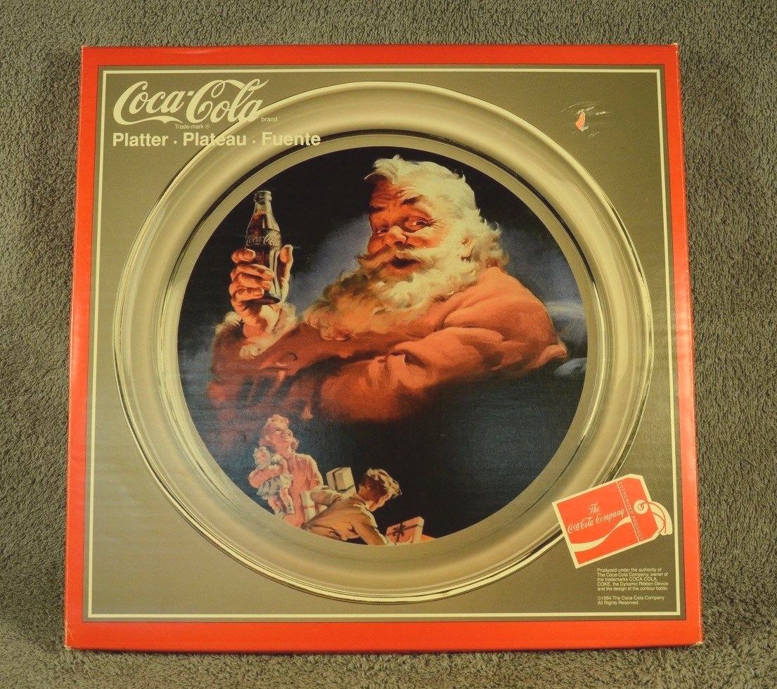 Title (ebay affiliate link): Coca Cola Santa Claus glass platter. 13" in diameter. Mint. Circa 1994