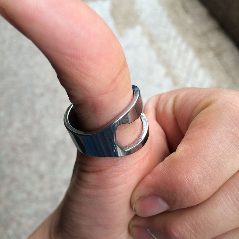 Title (ebay affiliate link): 2pcs Silver Ring Beer Bottle Opener Stainless Steel Metal Finger Thumb Keyring