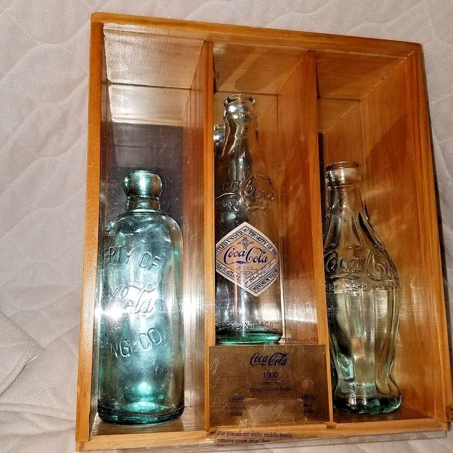 Title (ebay affiliate link): 3 ICONIC COCOA-COLA BOTTLES in Wooden Collectors box 1915, 1899, 1900