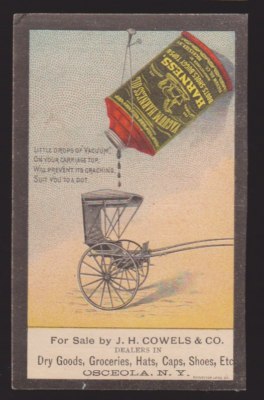 Rare 1800s Vacuum Harness Oil trade card - Osceola, NY