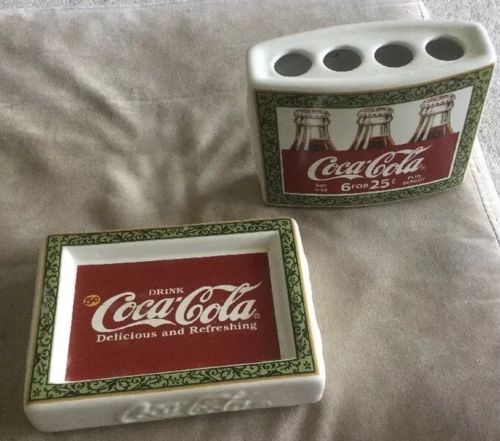 Coca-Cola Ceramic Soap Dish & Toothbrush Holder Set. Bath Bathroom