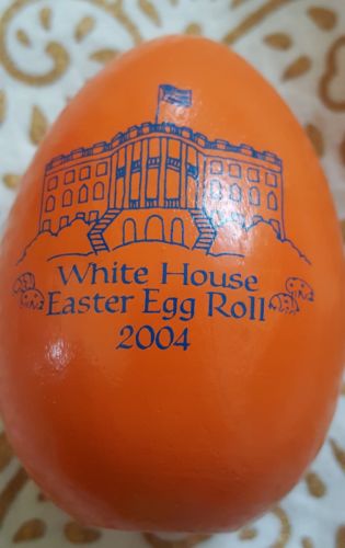 Title (ebay affiliate link): 2004 WHITE HOUSE ~ Easter Egg Roll ~ Orange ~ Wooden Egg ~ George & Laura Bush -