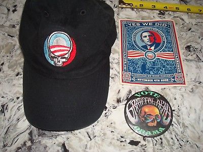 Title (ebay affiliate link): DEADHEADS FOR OBAMA PACKAGE HAT BUTTON STICKER GRATEFUL DEAD PRESIDENT CAMPAIGN