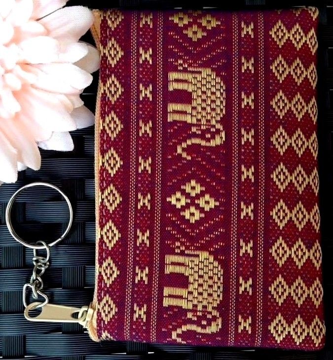 Title (ebay affiliate link): Bag coins purse elephant key chain zip clutch handbag Thai vintage fabric wallet