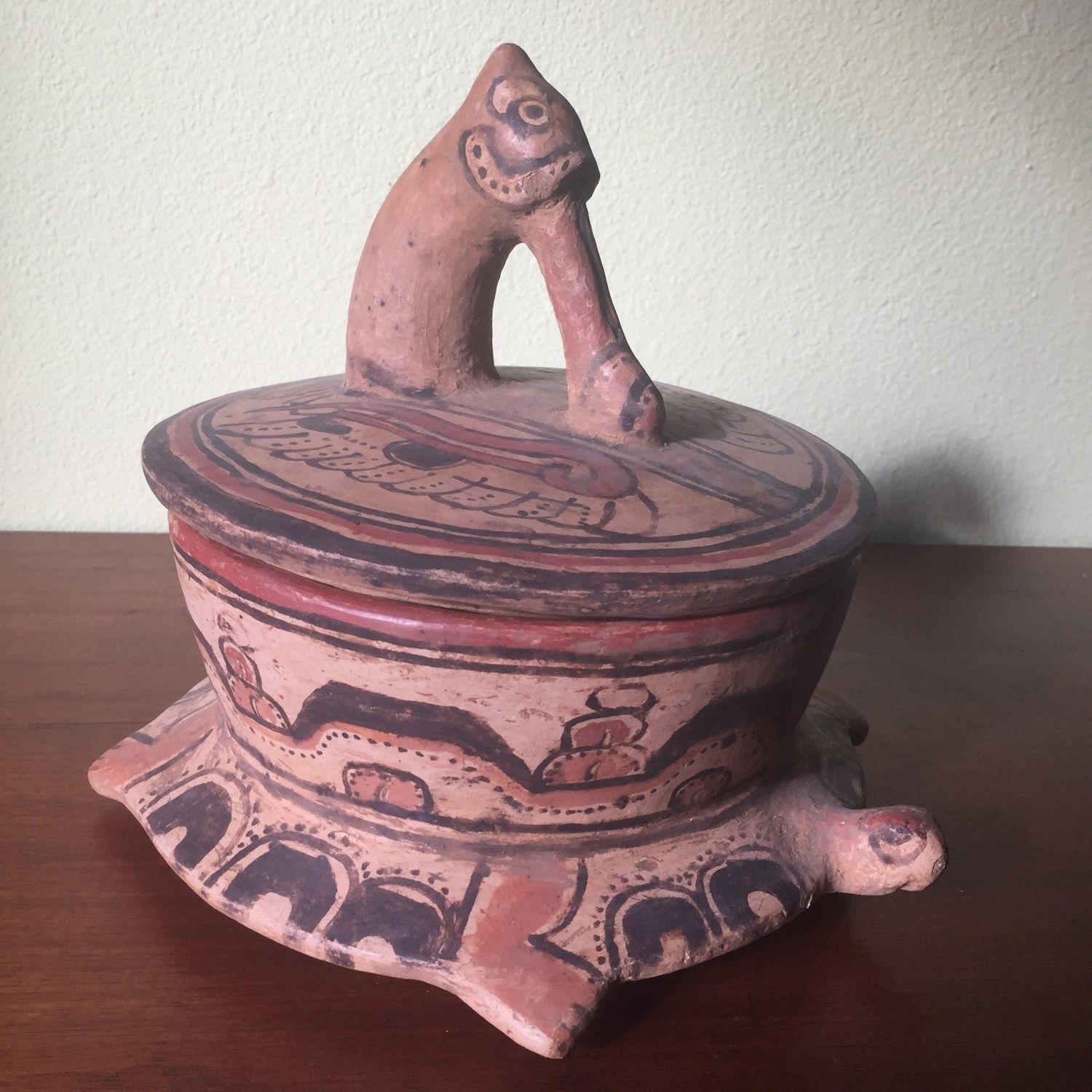 Title (ebay affiliate link): replica Mayan lidded world turtle bowl vessel Pre Columbian ceramic aquatic bird