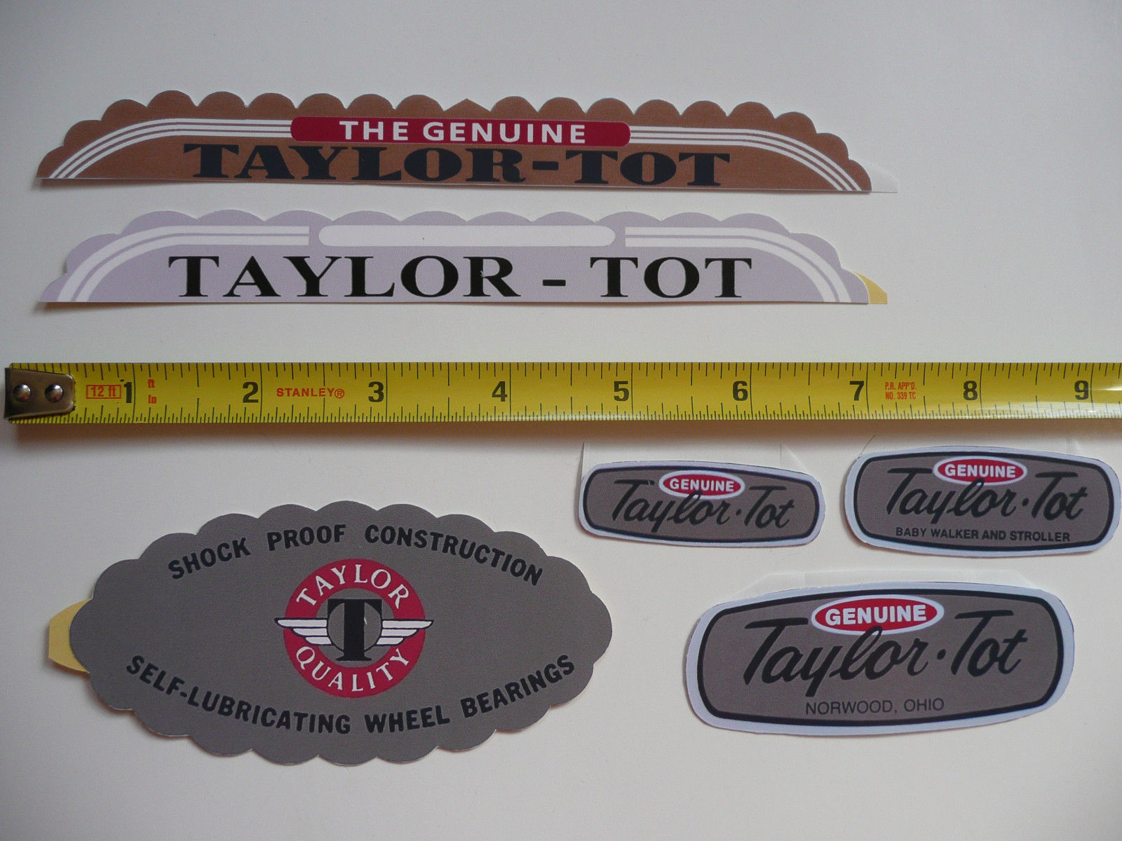 Title (ebay affiliate link): Lot of 6 Assorted Taylor-Tot Stroller Decals Sticker Reproductions
