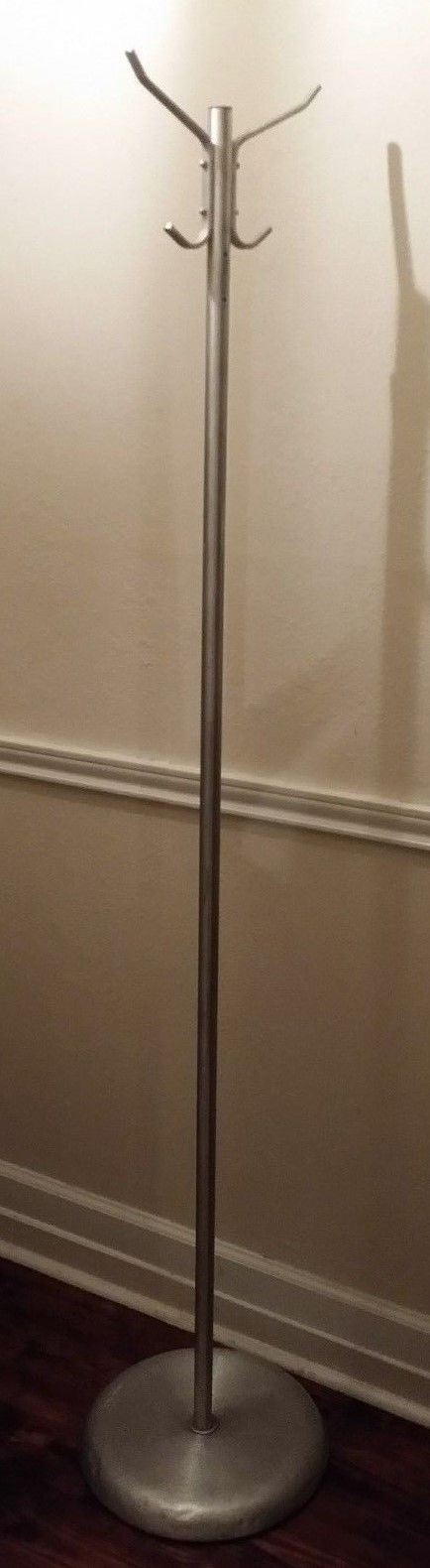 Title (ebay affiliate link): Coat Tree Hat Rack Aluminum Art Deco Mid Century Modern Metal Engraved Glaro