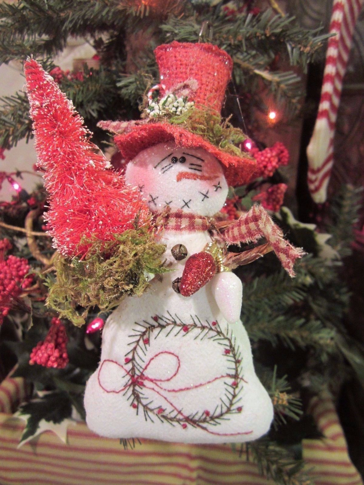 Title (ebay affiliate link): Primitive Christmas Red Tree Snowman Ornie or Bowl Filler #1503