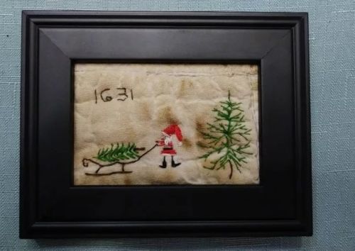 Title (ebay affiliate link): Primitive SaNtA Sleigh Christmas tree "1631" folk art TINY SaMpler OLD QuiLt