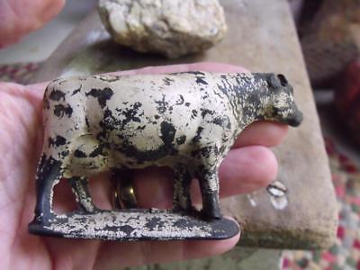 Small Rustic Primitive Antique Cow Figure Toy Shabby Chippy Paint