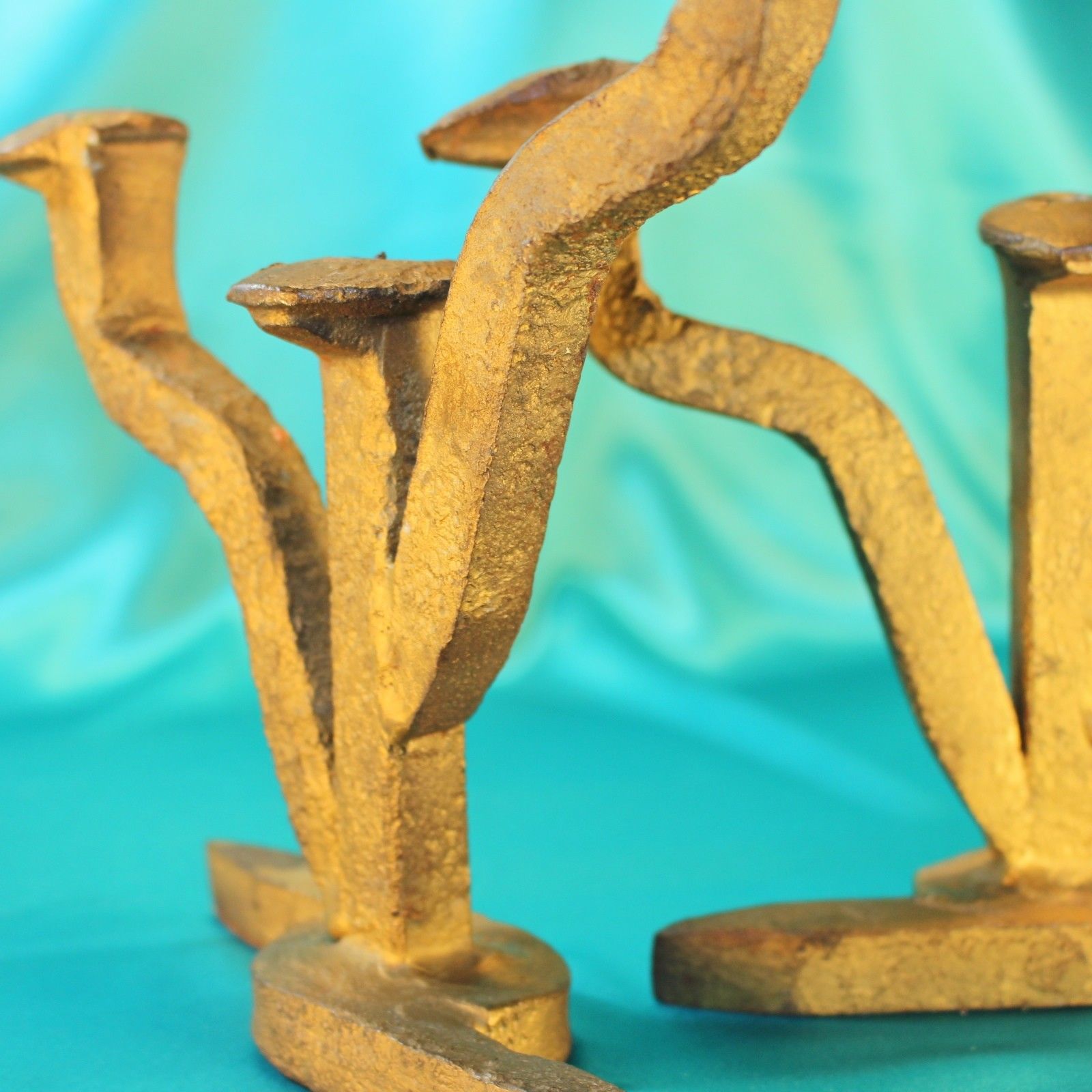 2 Brutalist RR Railroad /Ship Deck SPIKE Candle Holder Vintage Antique Tramp Art