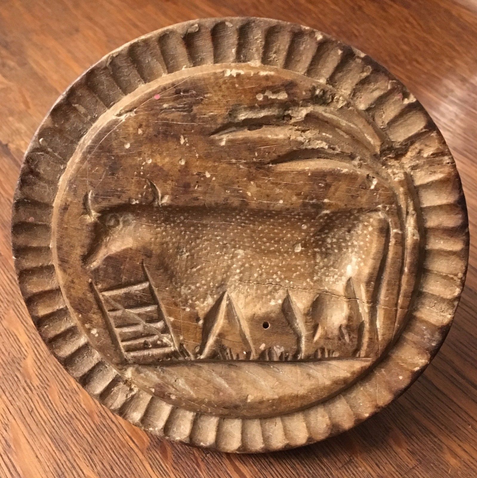 antique primitive folk art wood cow butter stamp / mold / press NO RESERVE