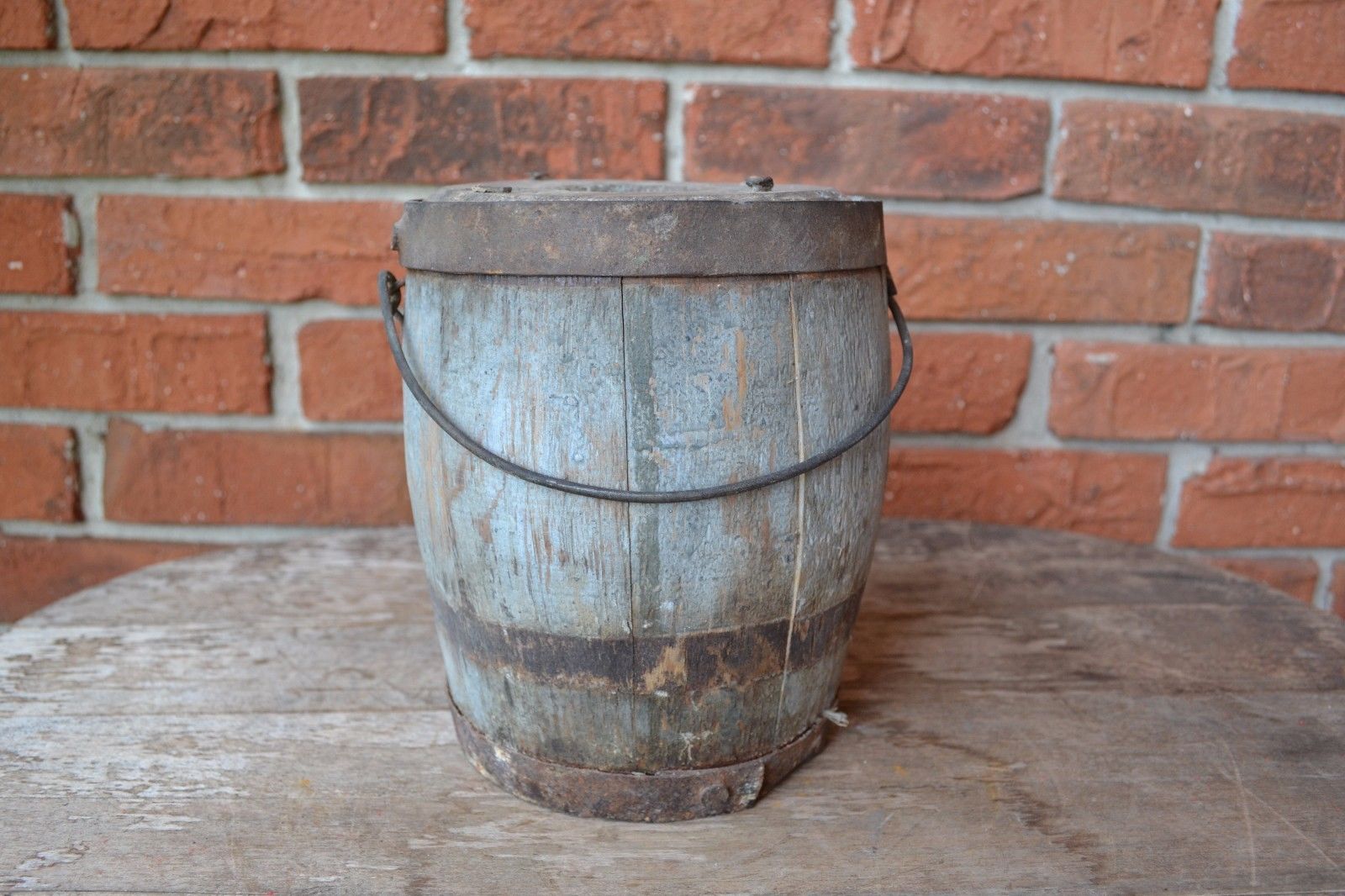 Title (ebay affiliate link): Antique Iron Banded Cooper Made Wooden Keg/Barrel Paint Bucket Farm Tool Wood