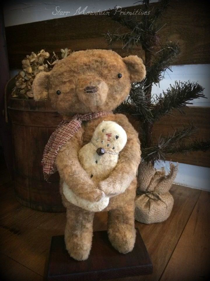 Title (ebay affiliate link): Primitive Standing Teddy Bear w/ Removable Snowman Ornie Christmas ~Folk Art~